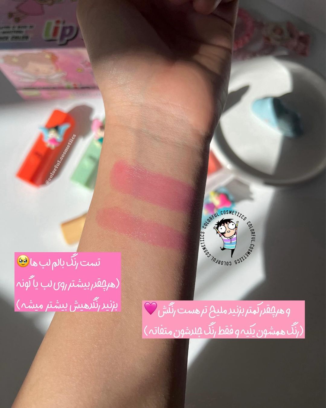 تناژ صورتی ملایم داره روی لب و میتونید به عنوان رژگونه هم استفاده کنید رنگ صورتی دخترونه داره🥹💕